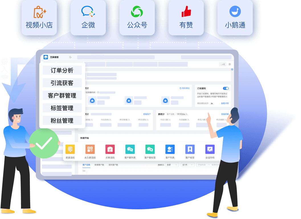 芝麻提供从引流获客、咨询接待、跟进转化、私域运营、数据洞察的全业务闭环服务